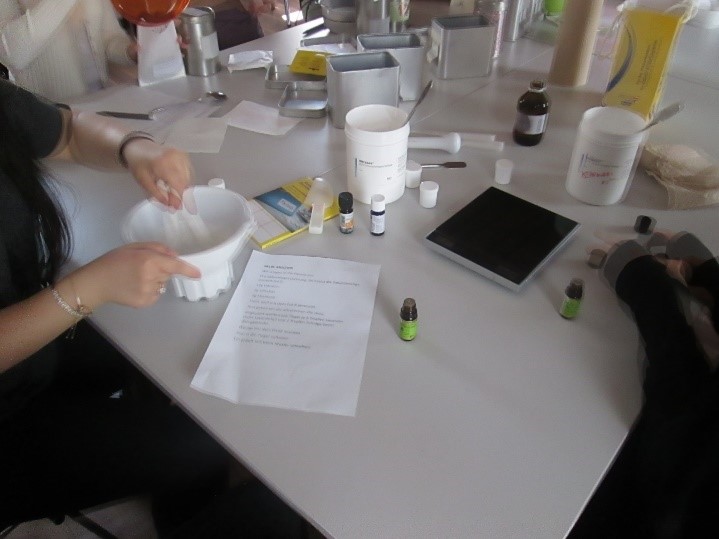 Das genaue Arbeiten und die Hygiene standen dabei ebenso im Fokus wie die Inhaltsstoffe und Wirksamkeiten der einzelnen Zutaten.