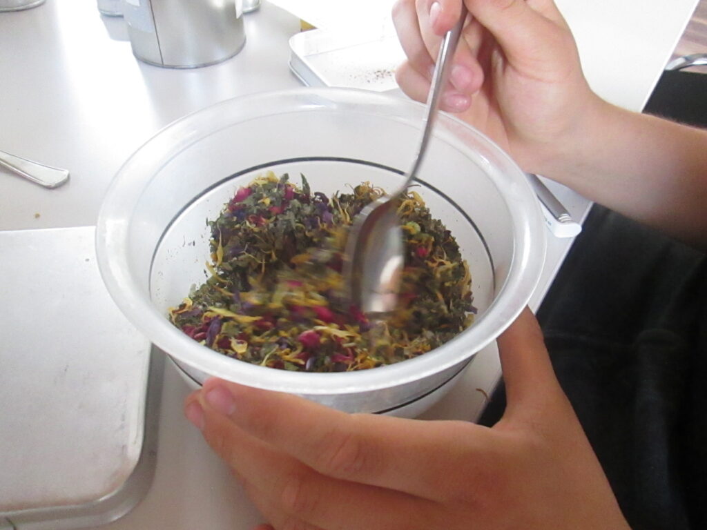 Nach den theoretischen Inputs wie Medikamentenforschung und verschiedene Verabreichungsformen erforschten die Teilnehmenden die Salbenherstellung sowie Herstellung von Teemischungen. Der Kräuterkunde widmeten wir besonders viel Zeit und Aufmerksamkeit. Alle Workshopteilnehmer_innen bereiteten selbst Tees und Salben zu.